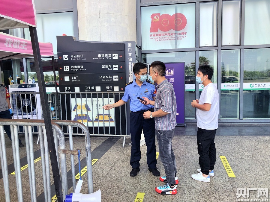 “請進(jìn)站旅客戴好口罩,打開‘閩政通’點(diǎn)擊健康碼,間隔1米有序進(jìn)站……”7月31日早晨7點(diǎn),廈門北站值班站長吳振斌提前來到南進(jìn)站口上崗值守,不斷地提醒進(jìn)站旅客遵守防疫規(guī)定,并協(xié)助查驗(yàn)健康碼。為了保障旅客出行安全,廈門北站配合當(dāng)?shù)匦l(wèi)生防疫部門建立了車站防疫檢測點(diǎn),組織旅客有序排隊(duì),逐一測量體溫,查驗(yàn)健康碼,宣講防控知識。