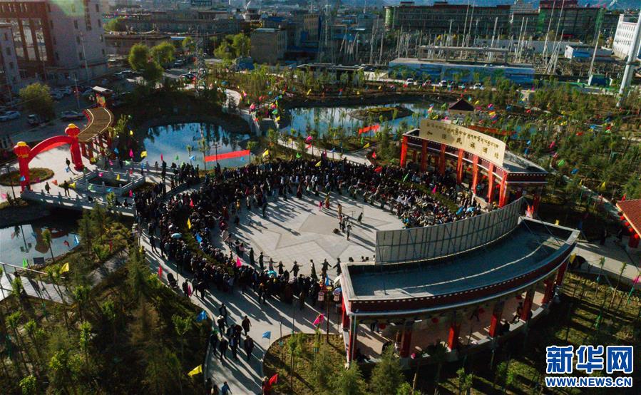 •      西藏日喀則市群眾在民族團結主題公園內(nèi)跳鍋莊舞(6月2日無人機拍攝)。新華社記者 劉東君 攝