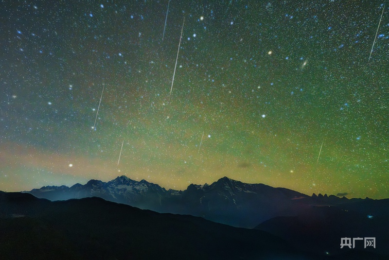 雙子座流星雨迎來極大值,多顆流星“降臨”玉龍雪山主峰,與皚皚白雪同框(央廣網(wǎng)發(fā) 李思翰 攝)