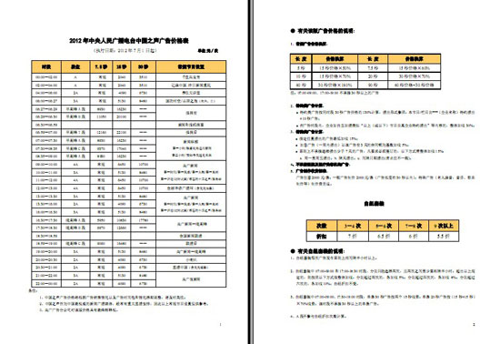 中央人民廣播電臺中國之聲廣告價(jià)格將于2012年7月1日起調(diào)整,調(diào)整后價(jià)格表已于日前正式發(fā)布。全權(quán)負(fù)責(zé)中國之聲、經(jīng)濟(jì)之聲廣告業(yè)務(wù)經(jīng)營的央廣廣告公司授權(quán)本網(wǎng)站獨(dú)家刊載,未經(jīng)授權(quán)請勿擅自刊登或轉(zhuǎn)載,否則將追究相關(guān)法律責(zé)任。
