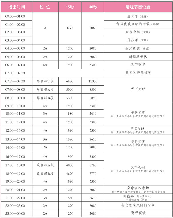 3、經(jīng)濟(jì)之聲廣告價格將根據(jù)廣告預(yù)售情況以及廣告時間飽和情況擇期調(diào)整,請及時關(guān)注;