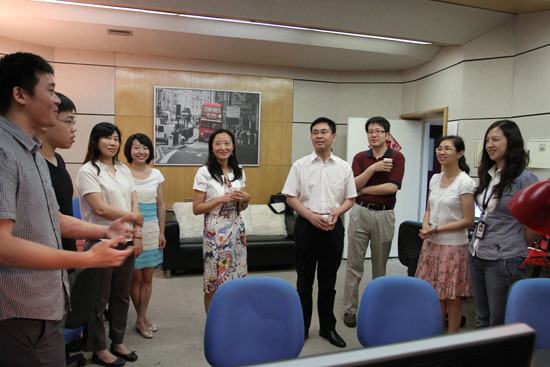 2012年6月8日,中央臺(tái)機(jī)關(guān)黨委副書記劉智力、團(tuán)委書記王非在央廣傳媒發(fā)展總公司廣告分公司黨支部書記、常務(wù)副總經(jīng)理周軍的陪同下,深入央廣廣告分公司,看望了正在緊張備戰(zhàn)2013年廣告預(yù)售工作的央廣廣告一線員工,并代表中央臺(tái)機(jī)關(guān)黨委、團(tuán)委,將“青年文明號(hào)”獎(jiǎng)牌、“青年崗位能手”證書頒發(fā)到一線員工手中。