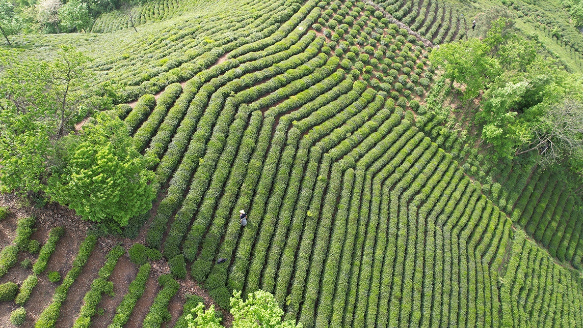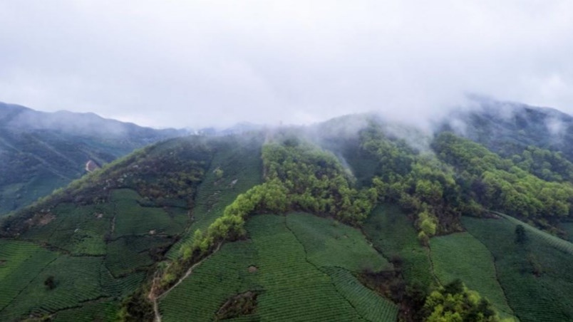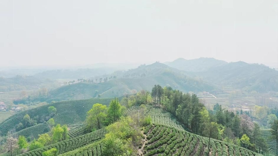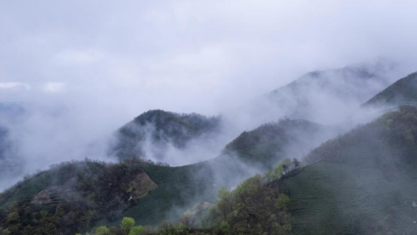 清明至谷雨時節(jié),河南信陽的茶山蒼翠如綠色的海洋。