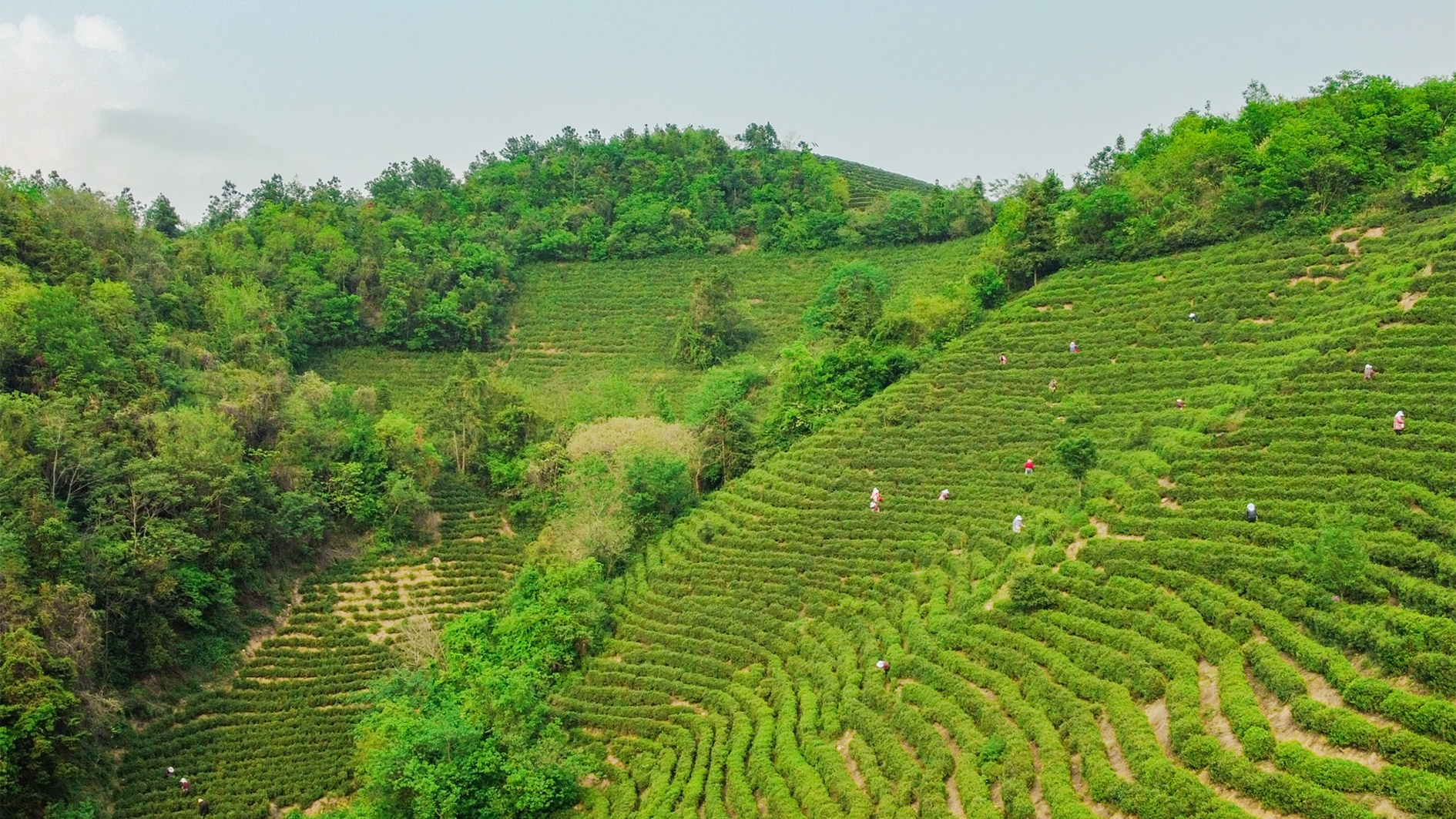 谷雨前后,位于信陽市浉河區(qū)的車云山郁郁蔥蔥。這里是信陽毛尖的主產(chǎn)區(qū)之一,正值采茶季,茶山上,茶人正忙著采茶。
