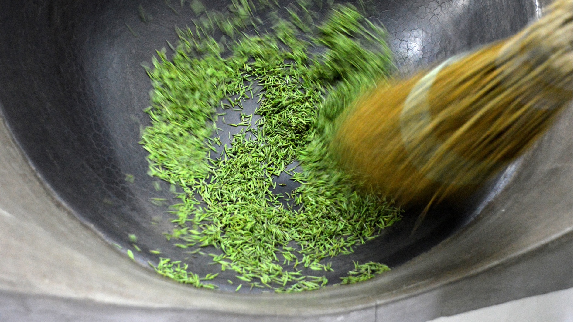 肖珺景今年27歲,學(xué)習(xí)信陽毛尖炒制5年,但與信陽毛尖的緣分卻是自小開始的,她從小聞著茶香長大。采摘、分級、攤放、生鍋(...