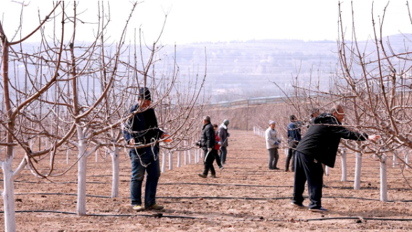 在暖水鄉(xiāng)德勝有梁村千畝蘋果產(chǎn)業(yè)示范園,隨處可見果農(nóng)和農(nóng)技人員來回穿梭,他們一手持剪刀,一手扶樹枝,忙碌著修剪果樹,并...