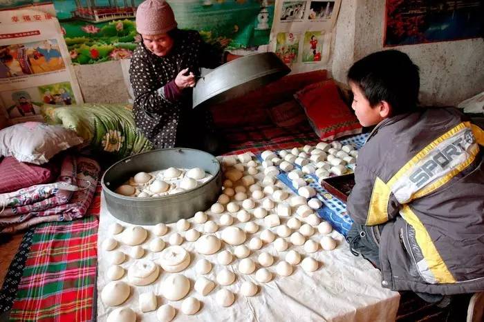 在那個(gè)物質(zhì)匱乏的年代,蒸年饃的用途主要是為了備足正月招待客人的食材。鄉(xiāng)村的年就是這樣在年饃的蒸籠里熱烈著。整個(gè)村子都被裊裊炊煙籠罩,空氣中到處彌漫著濃郁的饃香,讓人不禁陶醉在越來越濃的溫馨年味中。