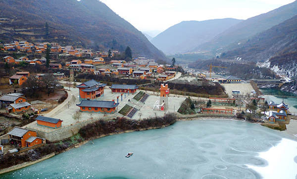 這是實施生態(tài)旅游扶貧后的甘肅省隴南市宕昌縣官鵝溝景區(qū)內(nèi)一處民俗村(2016年12月1日攝)。
