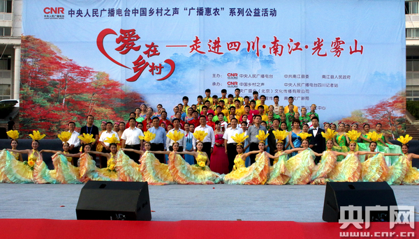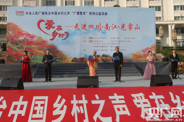 央廣網(wǎng)北京10月22日消息 據(jù)中國鄉(xiāng)村之聲報(bào)道,10月21日,中央人民廣播電臺(tái)中國鄉(xiāng)村之聲“廣播惠農(nóng)·愛在鄉(xiāng)村”公益活動(dòng)走進(jìn)四川省南江縣,除虹云、于乃久、李進(jìn)等全國著名的演藝界明星為現(xiàn)場近萬名群眾送去文化大餐外,來自北京的權(quán)威醫(yī)療、畜牧業(yè)、茶葉專家也為農(nóng)民朋友送去醫(yī)療農(nóng)技服務(wù);顒(dòng)中,中央人民廣播電臺(tái)副總編輯史敏為南江縣“廣播惠農(nóng)”工程示范縣、“愛在鄉(xiāng)村”示范點(diǎn)授牌。中央人民廣播電臺(tái)副總編輯史敏、南江縣縣委書記劉凱、中央人民廣播電臺(tái)四川記者站站長劉長江、中央人民廣播電臺(tái)社教節(jié)目中心副主任陶煒參與活動(dòng)。