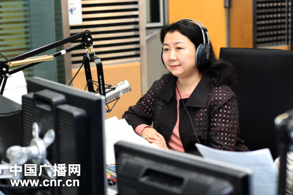 中央臺《中國大舞臺》節(jié)目嘉賓中央音樂學(xué)院附中校長娜木拉(中廣網(wǎng)記者涂傲攝)