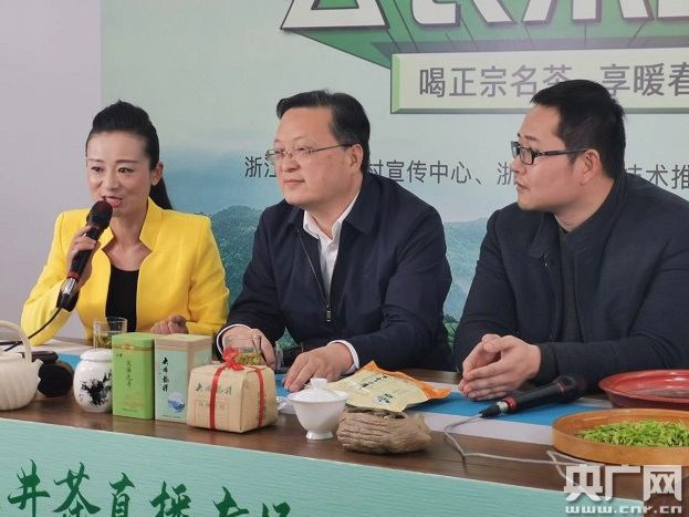 “這是我第一次參加直播活動(dòng),能為新昌茶農(nóng)吆喝、為大佛龍井吆喝,非常開心。這樣的活動(dòng)很有意義!眳⒓蝇F(xiàn)場直播的新昌縣副縣長呂田表示。