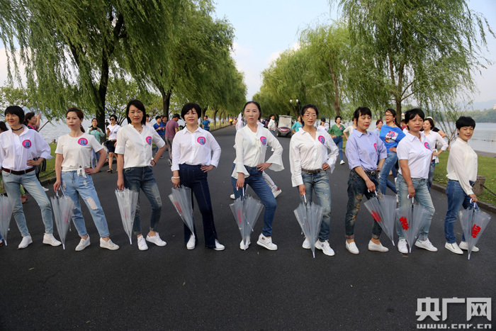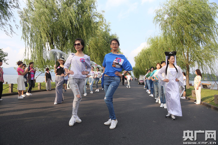 6月16日,在杭州西湖斷橋邊,一群自稱“凍齡女神”的阿姨們帶來了一場(chǎng)青春洋溢、時(shí)尚感十足的快閃走秀,慶祝西湖申遺成功7周年。