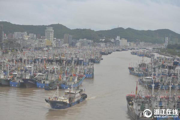9月5日上午,舟山市出海生產(chǎn)的3000多艘漁船紛紛從東海漁場(chǎng)返回沈家門(mén)漁港,卸載海鮮躲避臺(tái)風(fēng)“玲玲”。