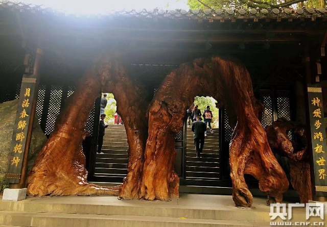 據(jù)了解,這里的根雕每塊都很大很重,其中最大的一尊佛像矗立在大雄寶殿,是一座凈高9.9米、重達(dá)40余噸的根雕——釋迦摩尼主佛。此外,根雕融合佛教文化,在羅漢文化長(zhǎng)廊中,長(zhǎng)達(dá)680余米的羅漢陣栩栩如生,這是世界上最大的一套根雕五百羅漢造像,工藝美術(shù)大師徐谷青經(jīng)過十余年精心創(chuàng)作而成。景區(qū)內(nèi),從根雕佛國(guó)、醉根寶塔到醉景園,都采用了漢唐風(fēng)格。
